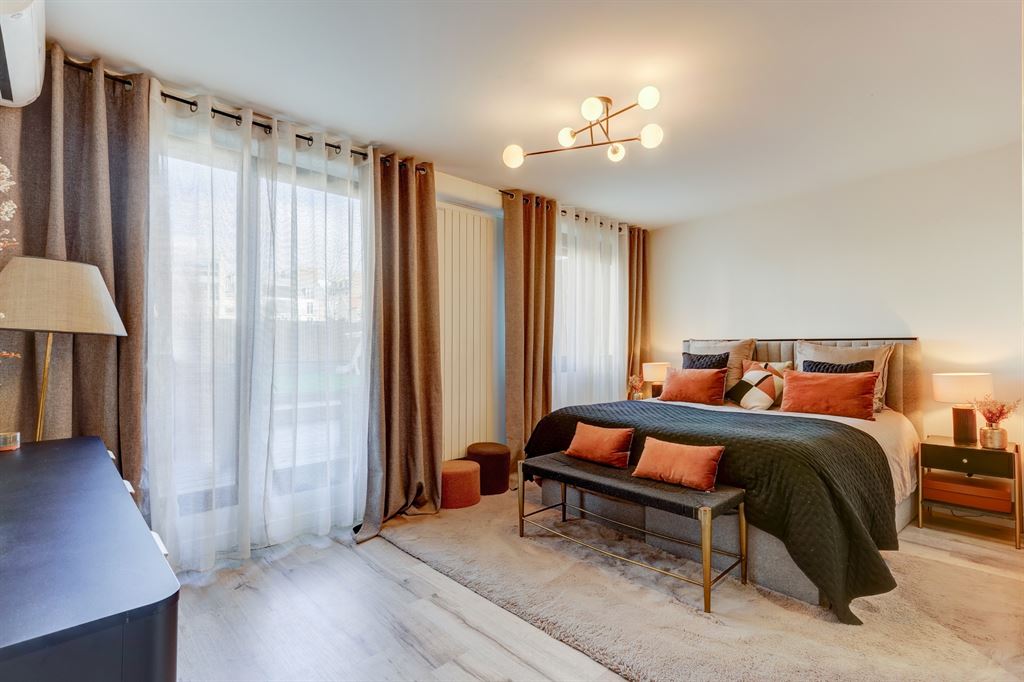 Il se compose d’un séjour avec cuisine ouverte, d’un balcon de 5m2, deux chambres, deux salles de bains, deux WC, une buanderie et une cave. Prestations de qualité, rangements sur mesure et climatisation assurant un confort optimal en toute saison.