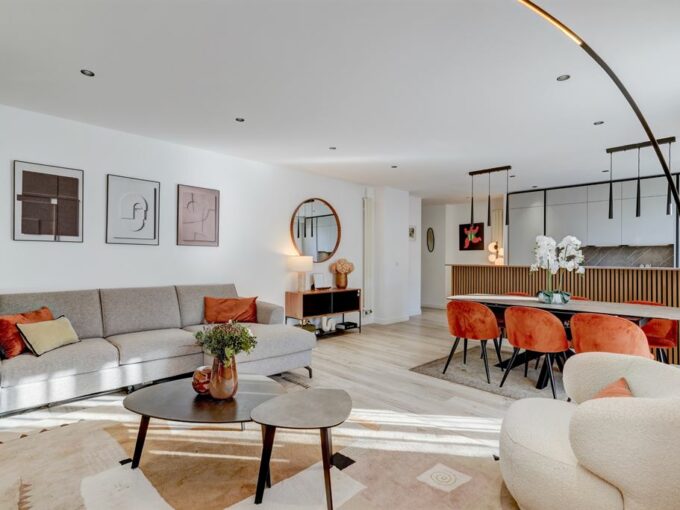 Elle se compose de la manière suivante: entrée, séjour ( 80m2) avec cuisine US entièrement équipée donnant sur terrasse, mezzanine aménagée, trois chambres avec balcon dont une suite parentale de 20 m² avec dressing et salle de bains ainsi que deux salles d’eaux, salle de cinéma donnant sur une terrasse de 60m2 face à la seine, hammam.